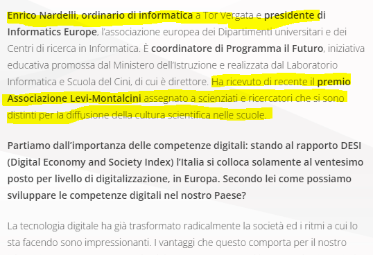 | Programma il futuro: dieci anni di innovazione e consapevolezza digitale per le scuole italiane, intervista di Antonio Palmieri per EconomyUp, 8 novembre 2024. | |